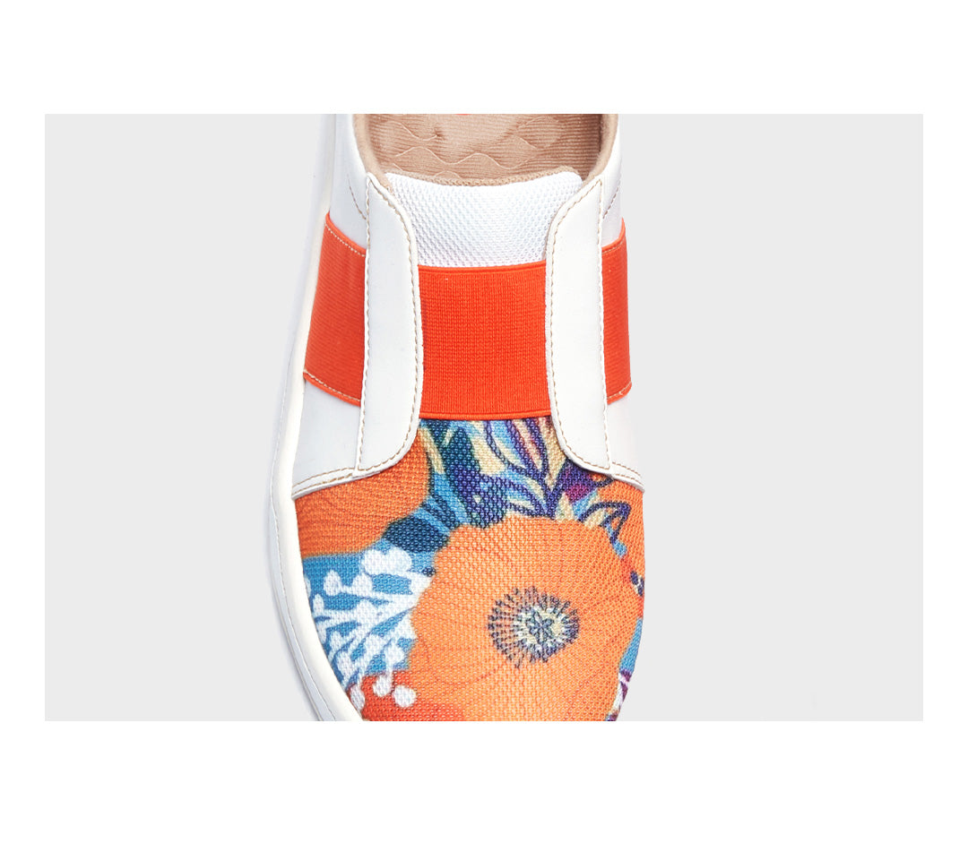The Marigolds shoe model bases on the concept of the sheer beauty of extraordinary plants and their unique color saturation. Captivating orange petals presented in asymmetric form deliver a distinctive mixture of aesthetic impressions, that radiate with uplifting sensations. The Marigolds is the right pick for all flowery aesthetical enthusiasts.
