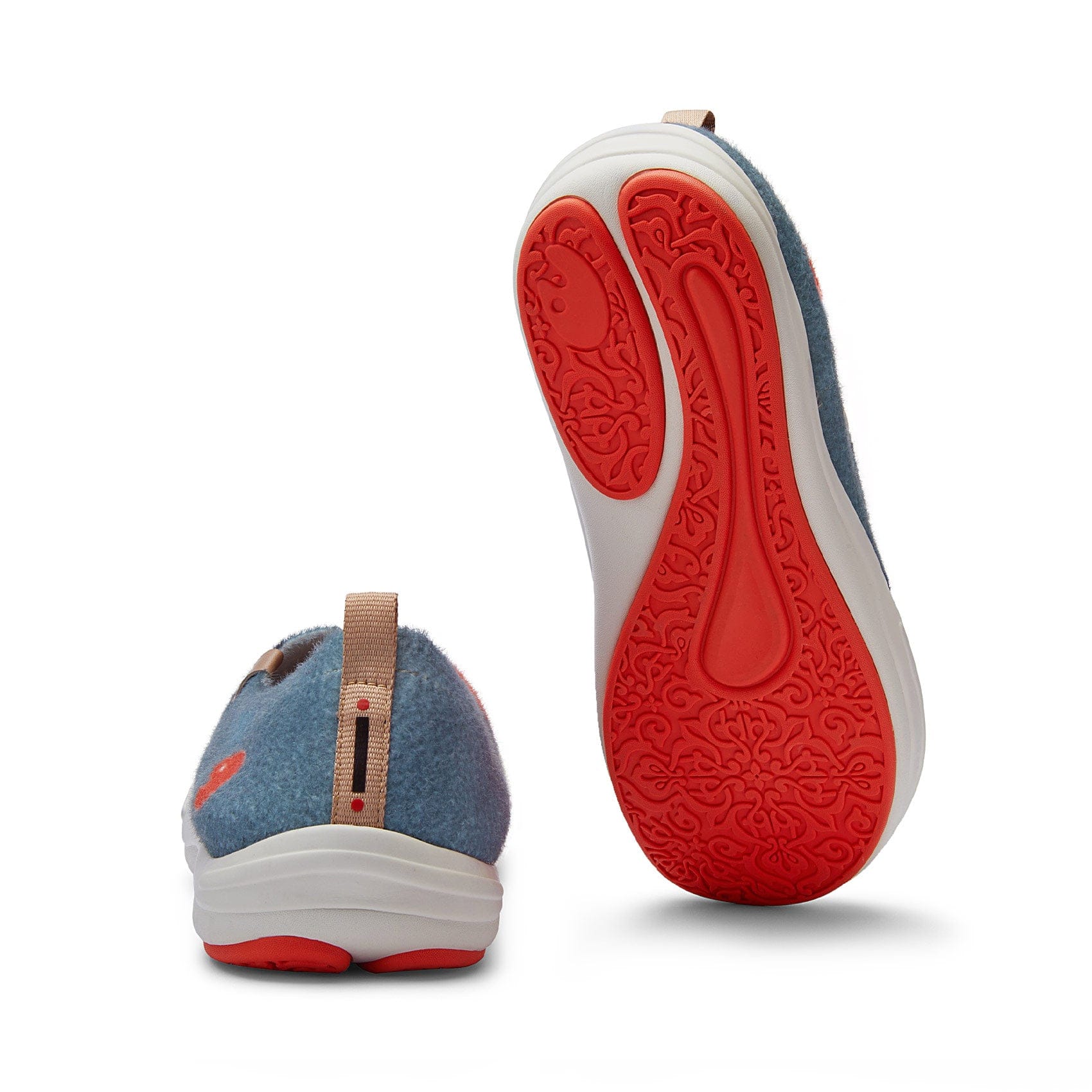Artistic sole patterned with the curved coastal features and traditional floral patterns of the Andalusian region. Non-slip rubber areas provide excellent grip for walking.
