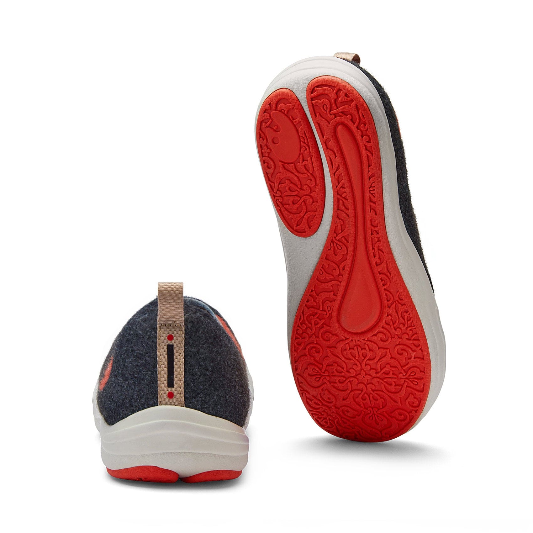 Artistic sole patterned with the curved coastal features and traditional floral patterns of the Andalusian region. Non-slip rubber areas provide excellent grip for walking.