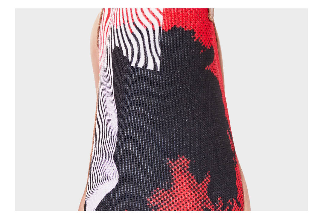 Innovative knit material with extremely high plasticity and breathability.