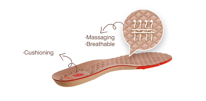 Specially designed insole promotes air circulation to keep your feet dry and helps to improve blood circulation in the feet.